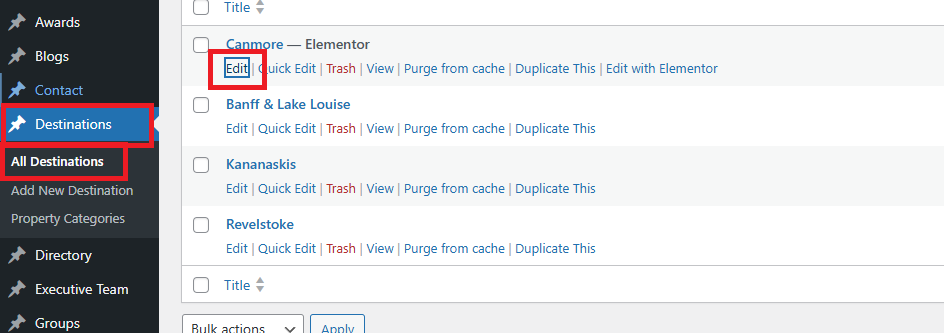 How to Edit Destination page in WordPress